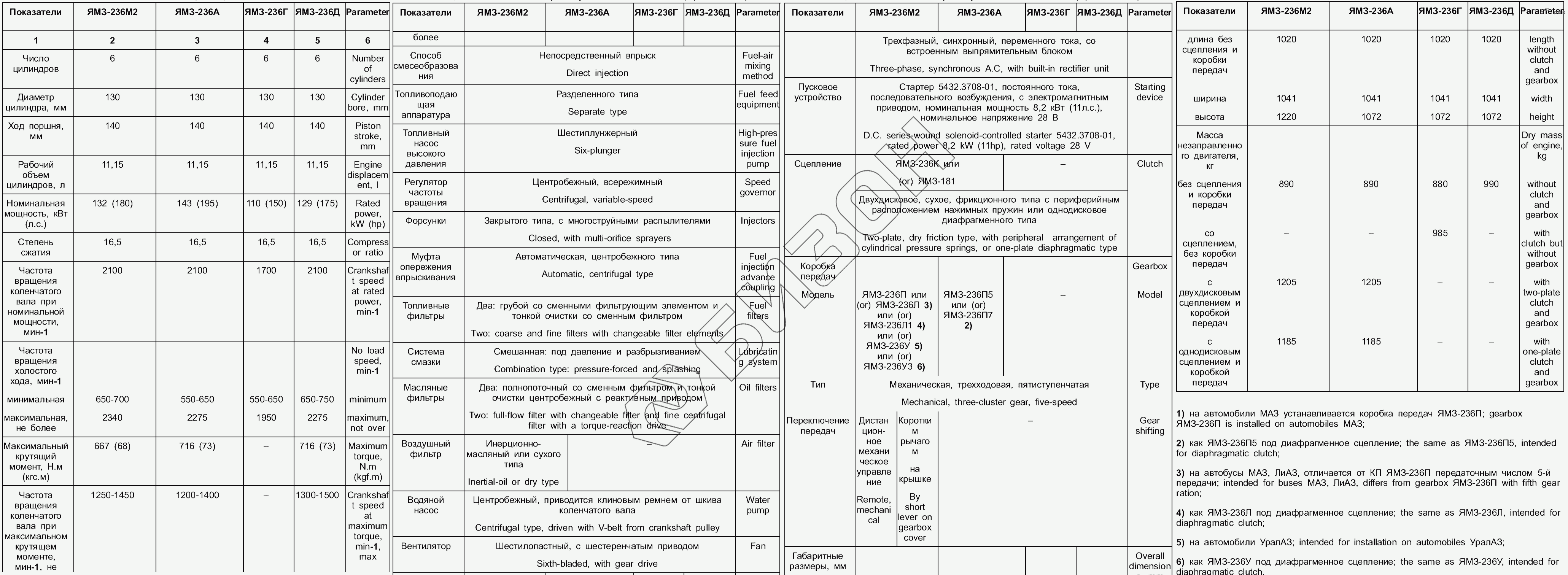 Графический каталог запасных частей к технике: ЯМЗ-236М2. Технические характеристики