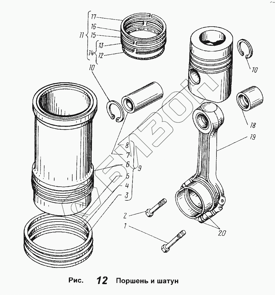 Графический каталог запасных частей к технике: ЯМЗ-238 АМ. Поршень и шатун