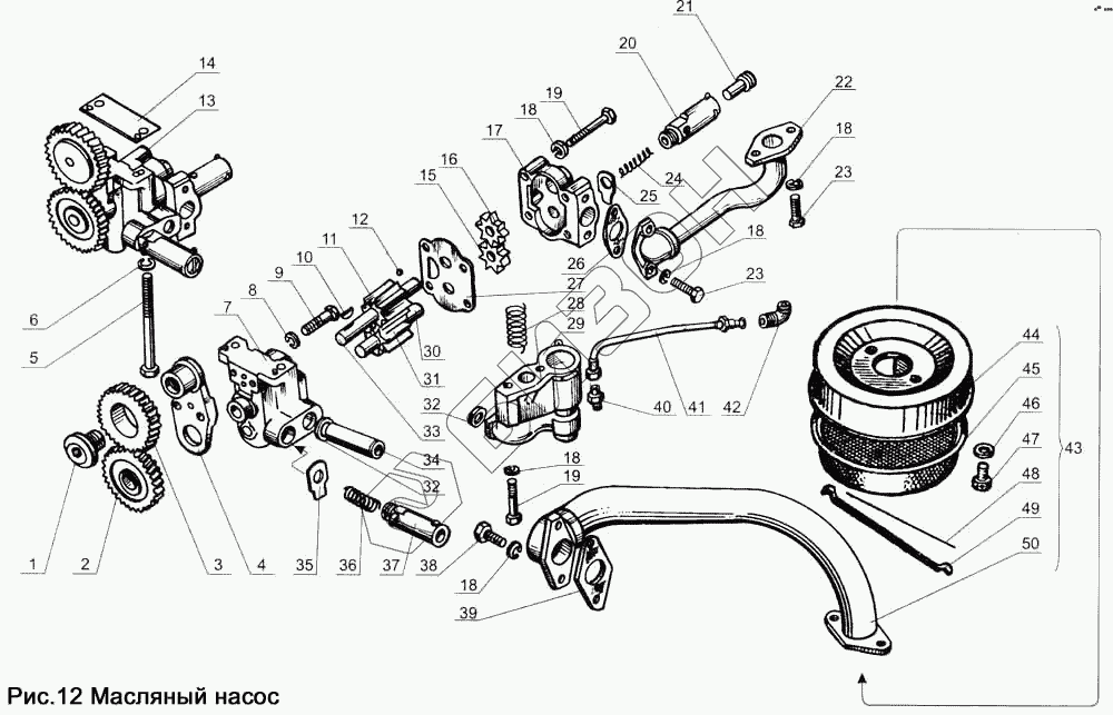 Графический каталог запасных частей к технике: ЯМЗ-238Д и Б. Масляный насос