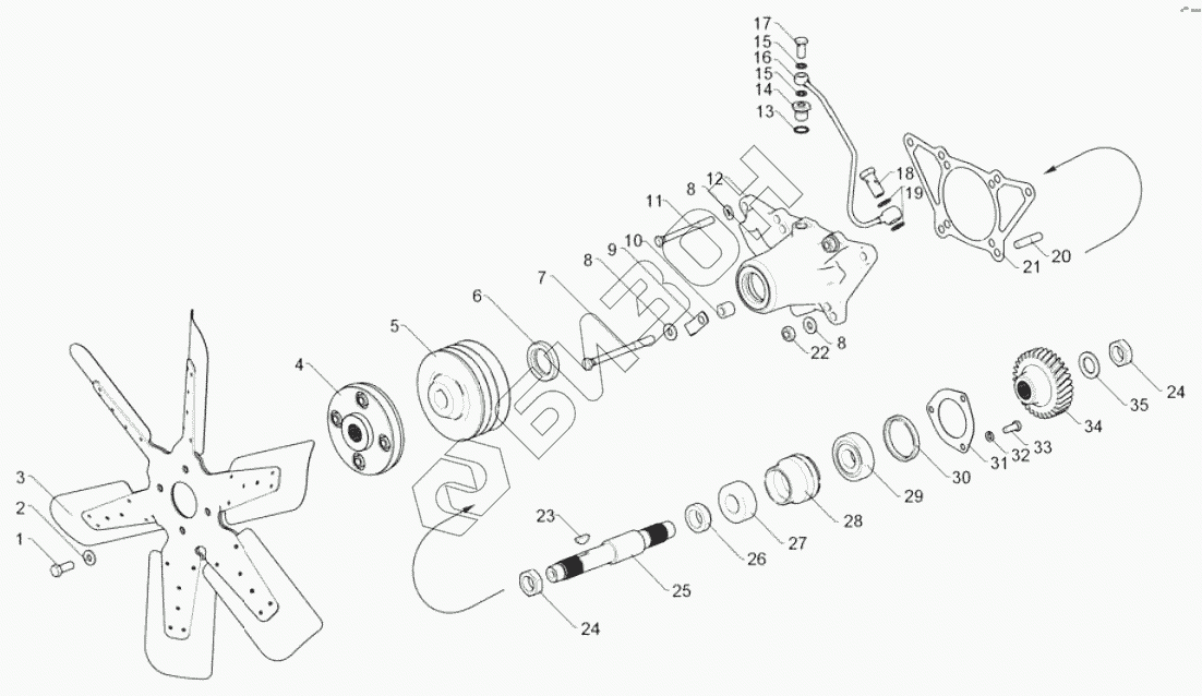 | 25 | 236НЕ-1308050-Д | Вал привода вентилятора |