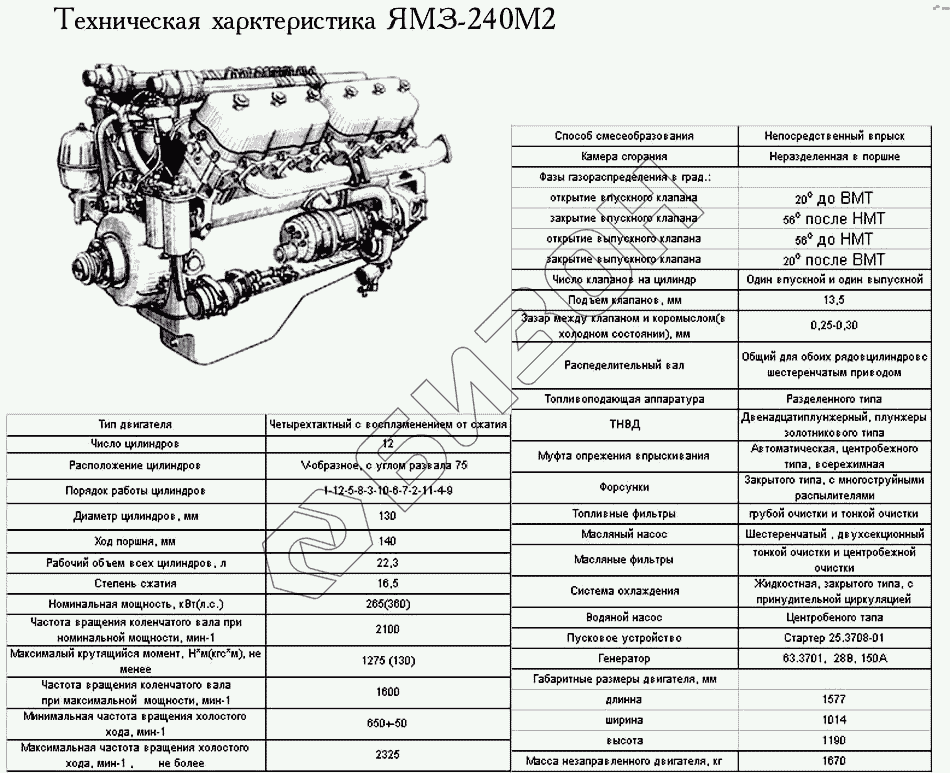Графический каталог запасных частей к технике: ЯМЗ-240. Техническая характеристика ЯМЗ-240М2