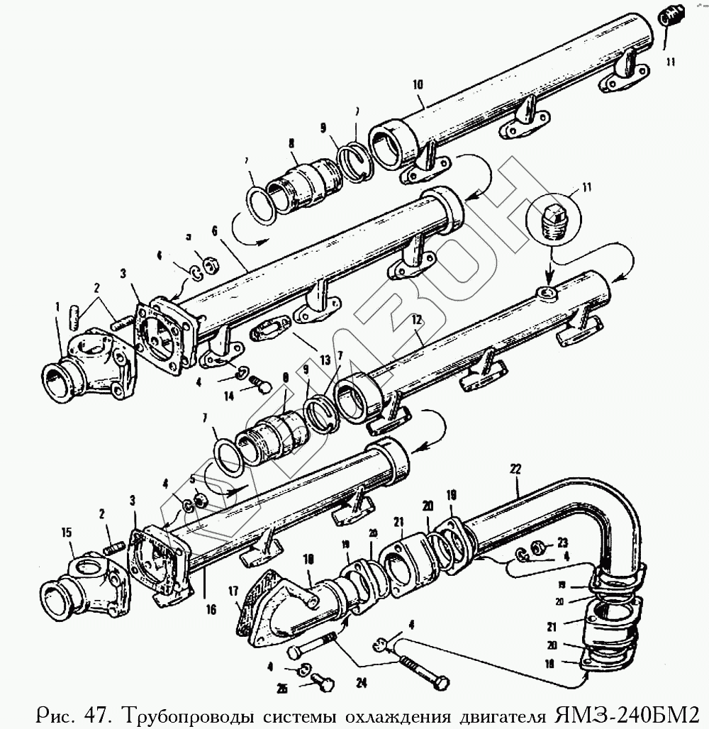 | 6 | 240-1303104-Б | Труба водяная передняя правая |