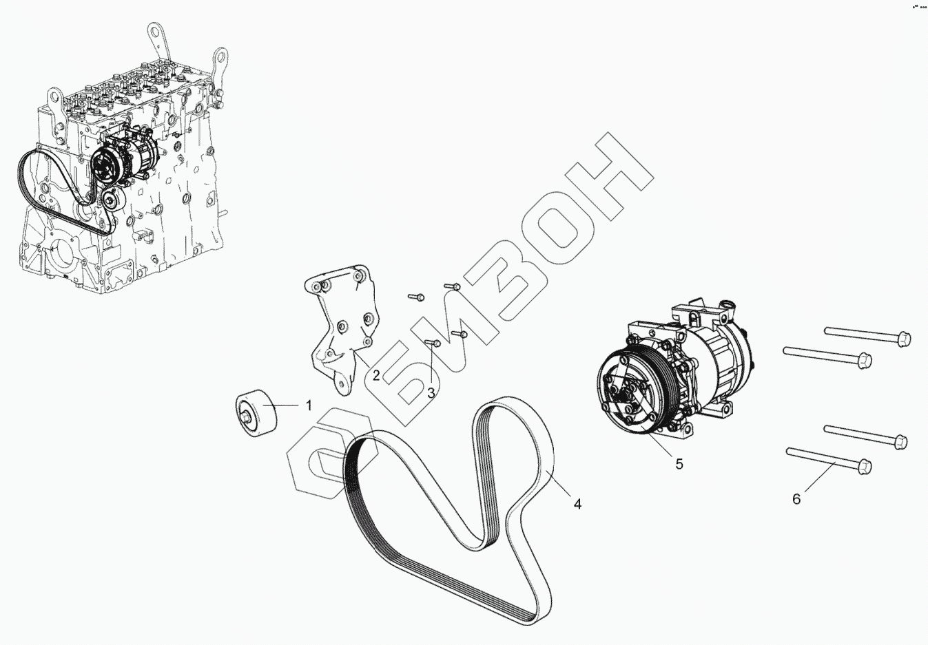 Графический каталог запасных частей к технике: ЯМЗ-53402. Компрессор кондиционера