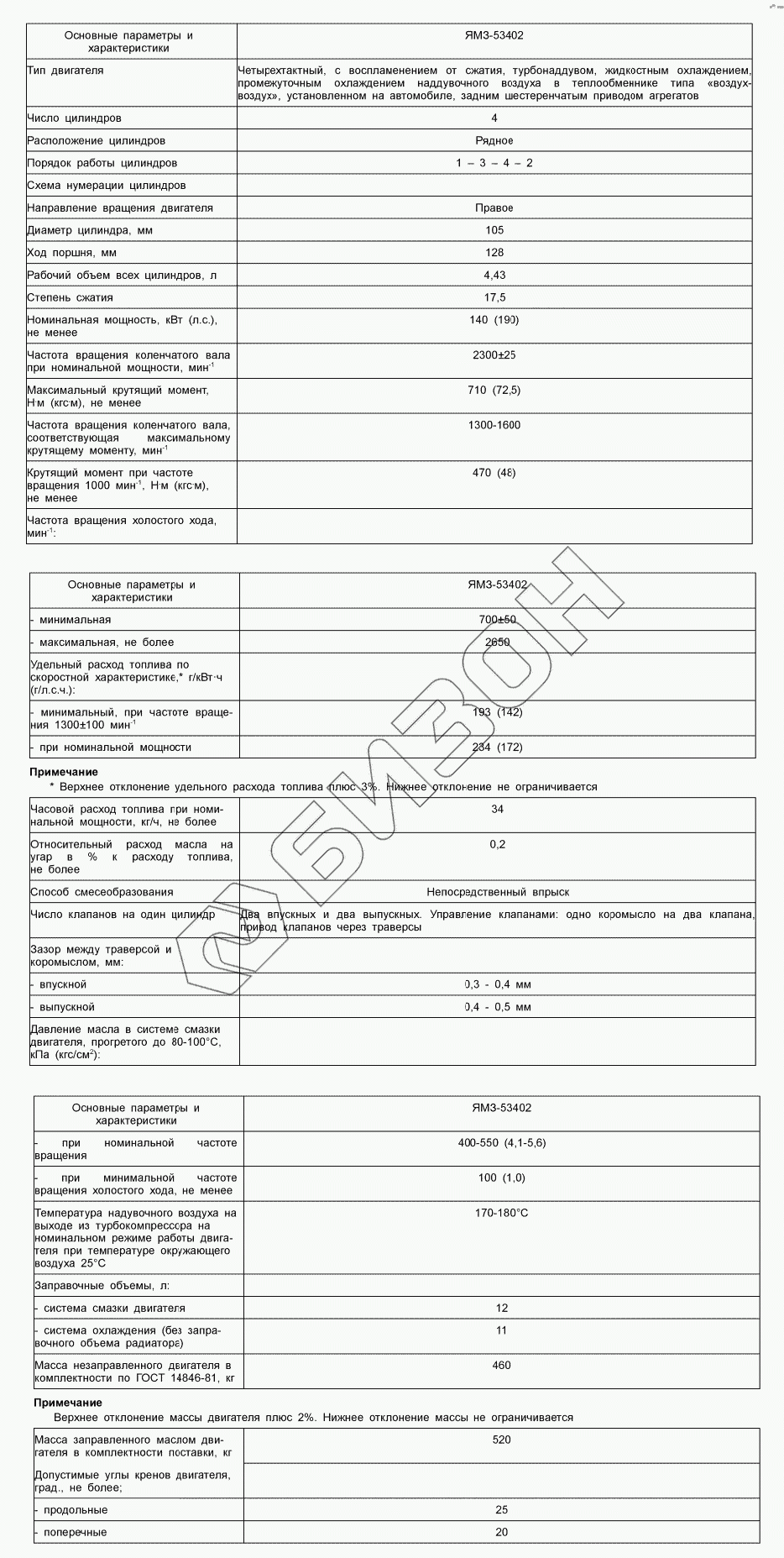 Графический каталог запасных частей к технике: ЯМЗ-53402. Техническая характеристика двигателя ЯМЗ-53402