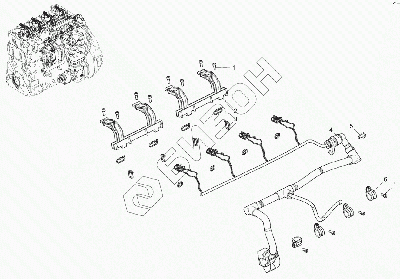 Графический каталог запасных частей к технике: ЯМЗ-53402. Жгут форсунок