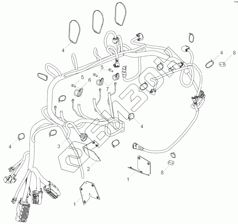 Графический каталог запасных частей к технике: ЯМЗ-53424. Установка жгута двигателя 53414.3724011