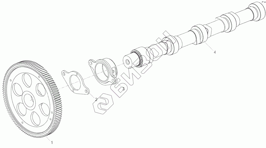 Графический каталог запасных частей к технике: ЯМЗ-53424. Вал распределительный 5340.1006010
