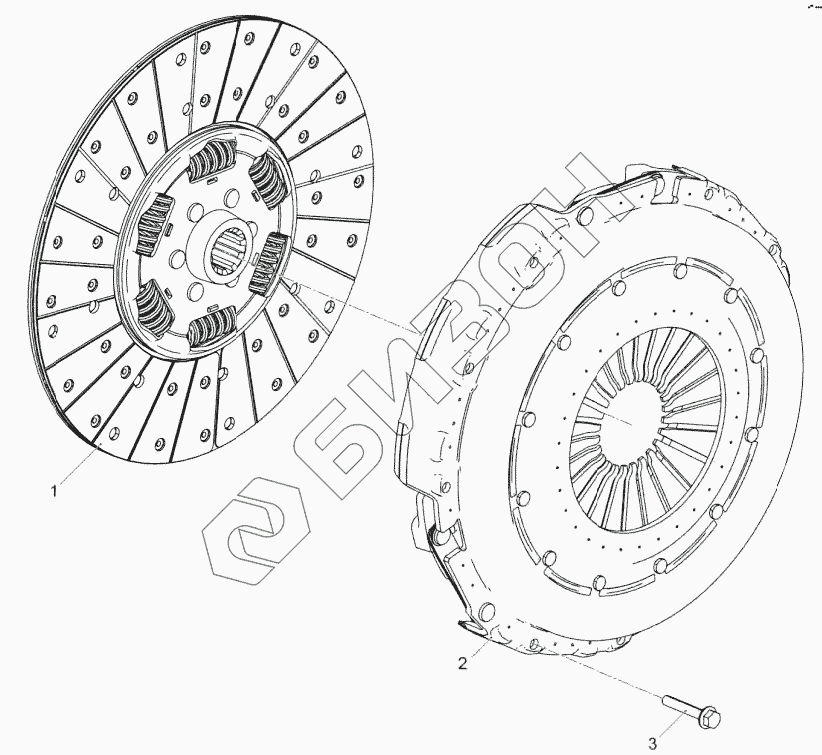 Графический каталог запасных частей к технике: ЯМЗ-53443. 36241.1600010 Установка сцепления