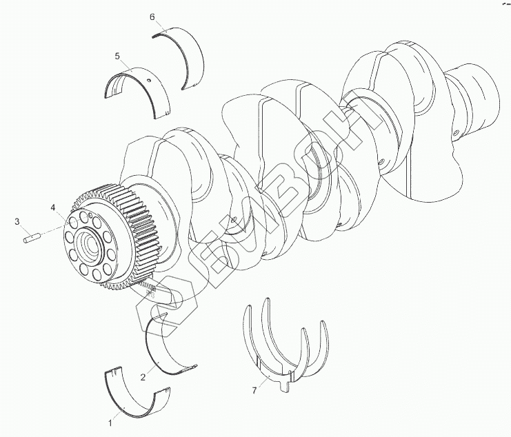 Графический каталог запасных частей к технике: ЯМЗ-53443. 5340.1005005 Установка коленчатого вала