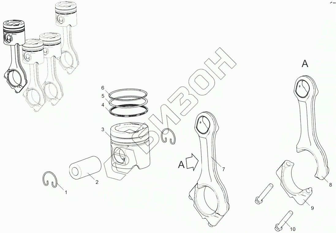 Графический каталог запасных частей к технике: ЯМЗ-5347-10, 53472. Группа шатунно-поршневая