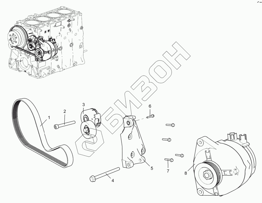 Графический каталог запасных частей к технике: ЯМЗ-5347-10, 53472. Привод генератора