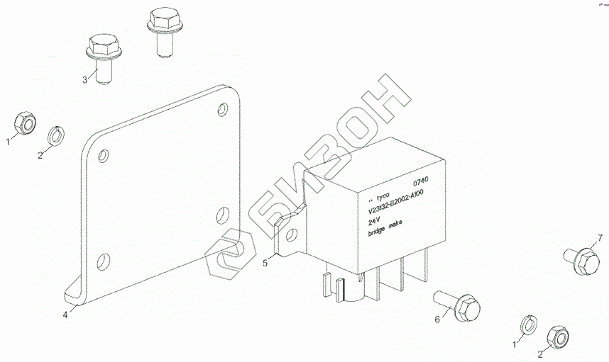 Графический каталог запасных частей к технике: ЯМЗ-534. 5344.3770005 Установка реле подогревателя