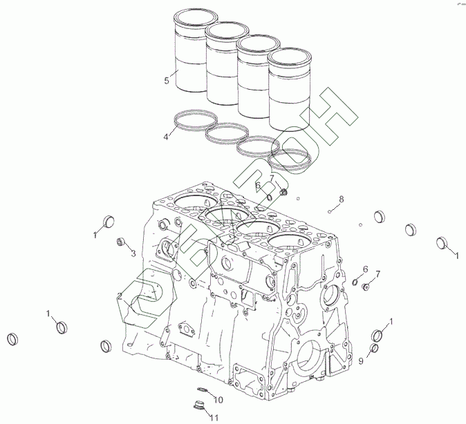 Графический каталог запасных частей к технике: ЯМЗ-534. 536.1002011-10 Блок цилиндров
