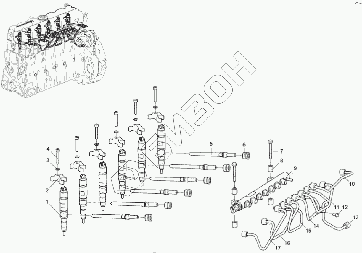 | 14 | 536.1112404-10 | Трубка высокого давления четвертого цилиндра |