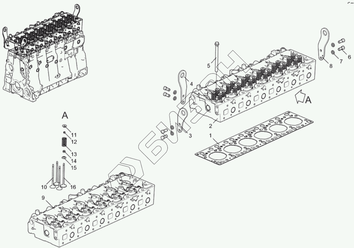 Графический каталог запасных частей к технике: ЯМЗ-536-100. Головка цилиндров