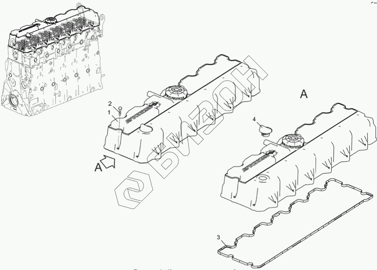 Графический каталог запасных частей к технике: ЯМЗ-536-100. Крышка головки цилиндров