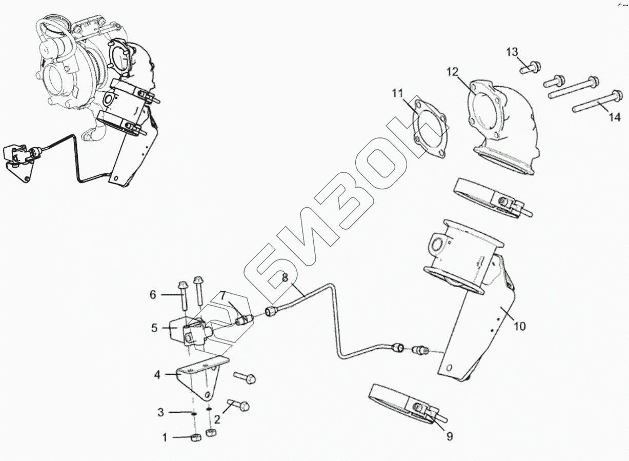| 12 | 536.1203020-20 | Патрубок выпускной турбокомпрессора |
