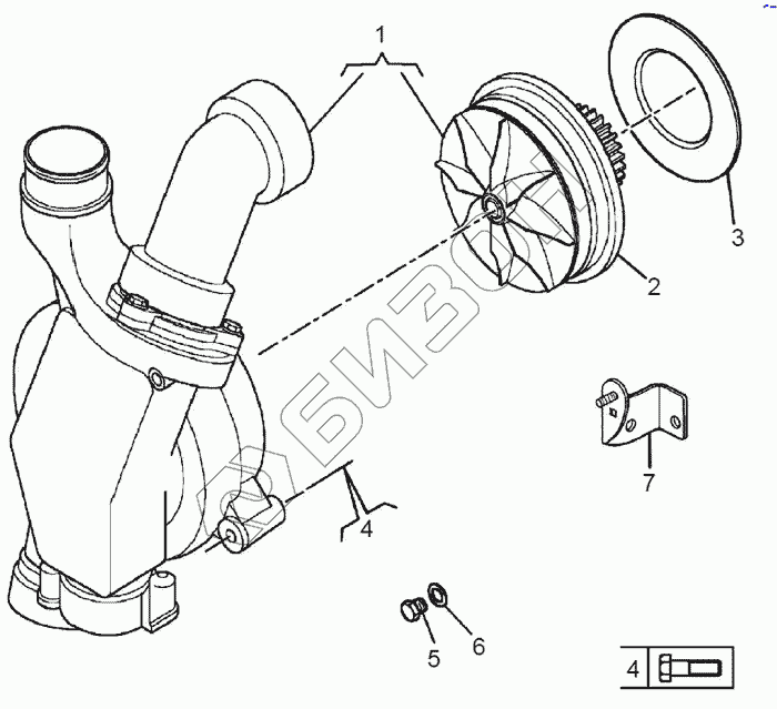 | 2 | 650.1307013 | Корпус подшипника с осью, крыльчаткой и шестерней водяного насоса в сборе |
