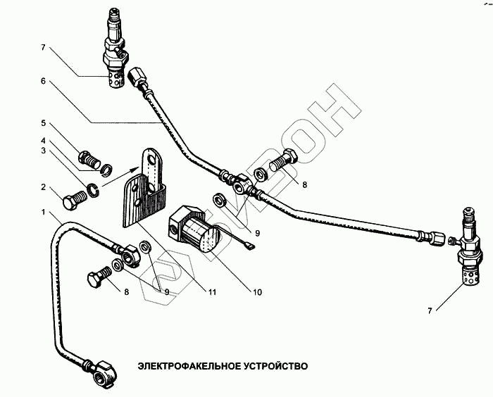 | 6 | 238-1022840 | Трубка топливная от электромагнитного клапана к свечам |