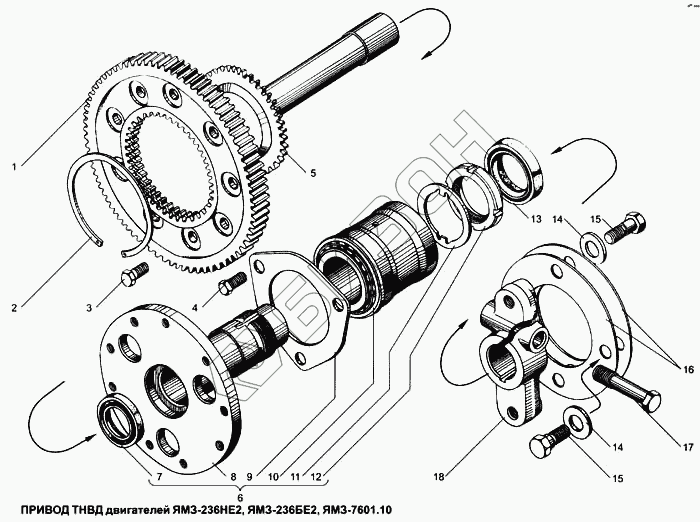 | 6 | 7511.102912(М0 | Ось ведомой шестерни с подшипником и маховиком в сборе |