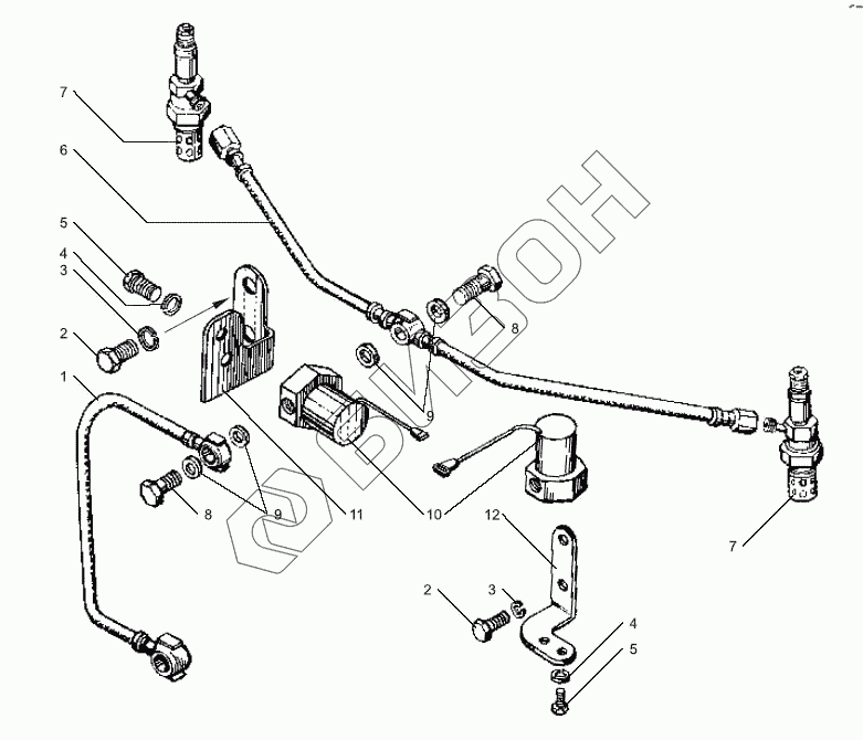 | 6 | 238-1022840 | Трубка топливная от электромагнитного клапана к свечам |