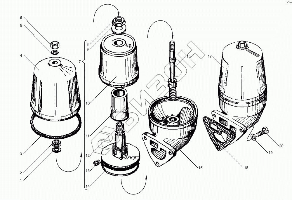 Графический каталог запасных частей к технике: ЯМЗ-6582.10 (Евро 3). Маслоочиститель центробежный