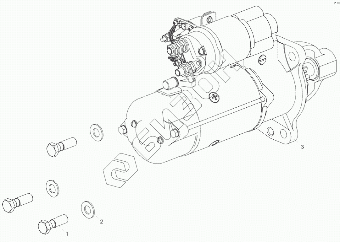 Графический каталог запасных частей к технике: ЯМЗ-6585 (для МАЗ). 6565.3708001 Установка стартера