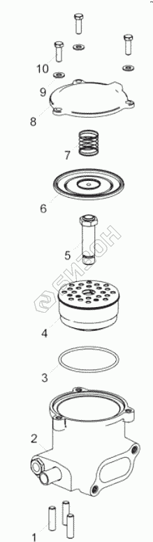 Графический каталог запасных частей к технике: ЯМЗ-6585 (для МАЗ). 6582.1014200 Маслоотделитель