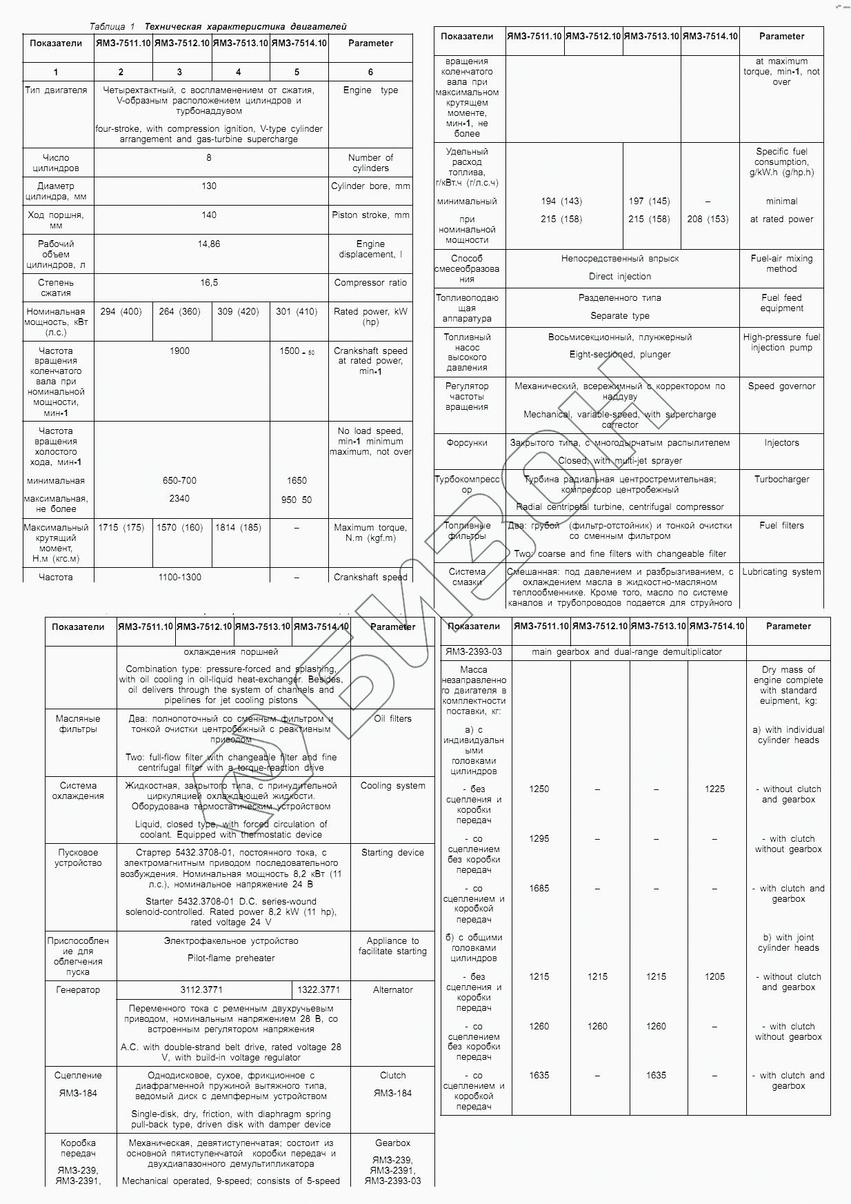 Графический каталог запасных частей к технике: ЯМЗ-7511.10. Техническая характеристика двигателей