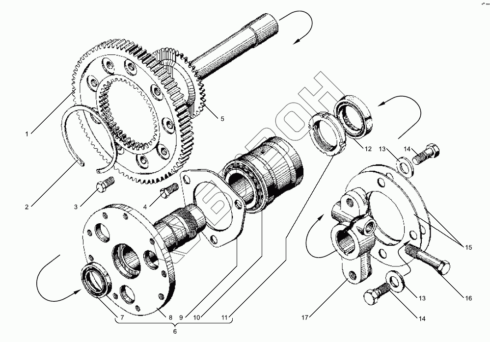 | 6 | 7511.1029120-01 | Ось ведомой шестерни с подшипником и манжетой в сборе |
