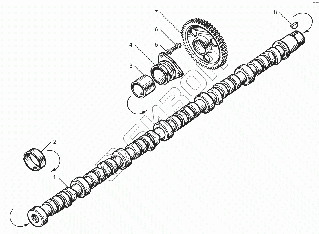 Графический каталог запасных частей к технике: ЯМЗ-850.10. Распределительный вал