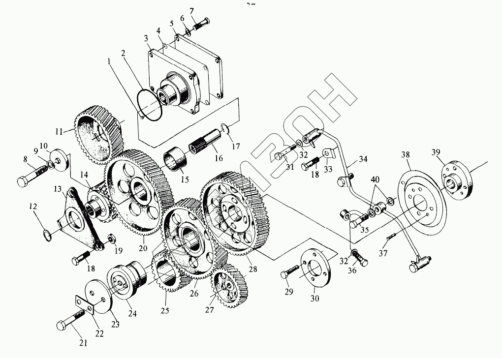 Графический каталог запасных частей к технике: YTO 4110. Gear Train Assy