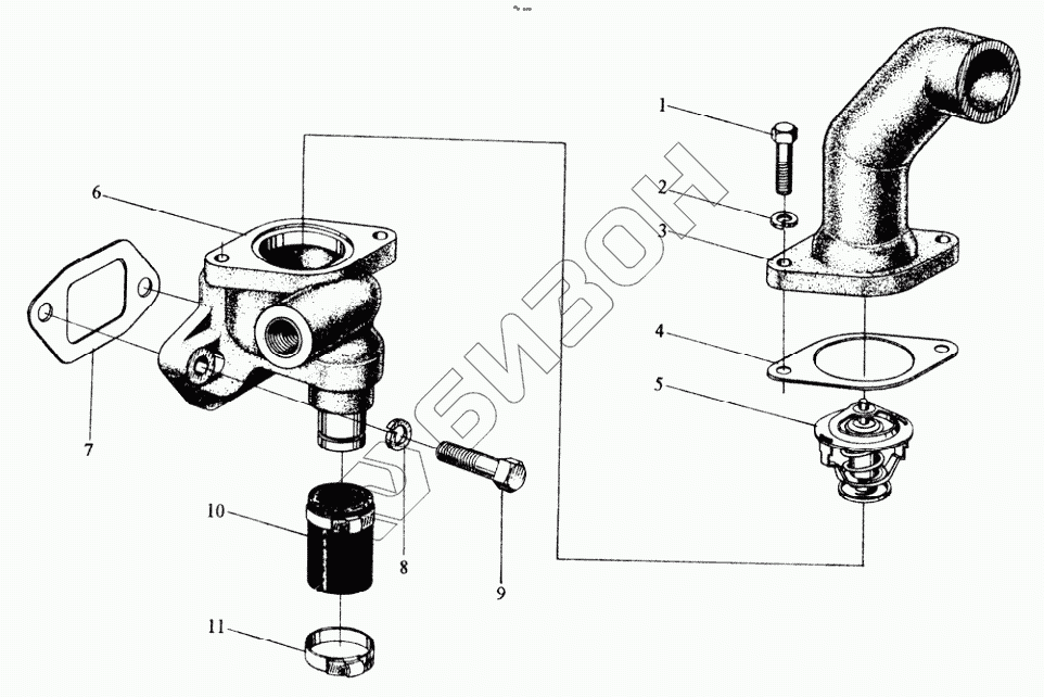 Графический каталог запасных частей к технике: YTO 4110. Thermostat Assy