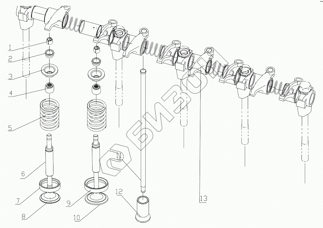 Графический каталог запасных частей к технике: Yuchai YC4G180-20. B30-1007000 Valve train system