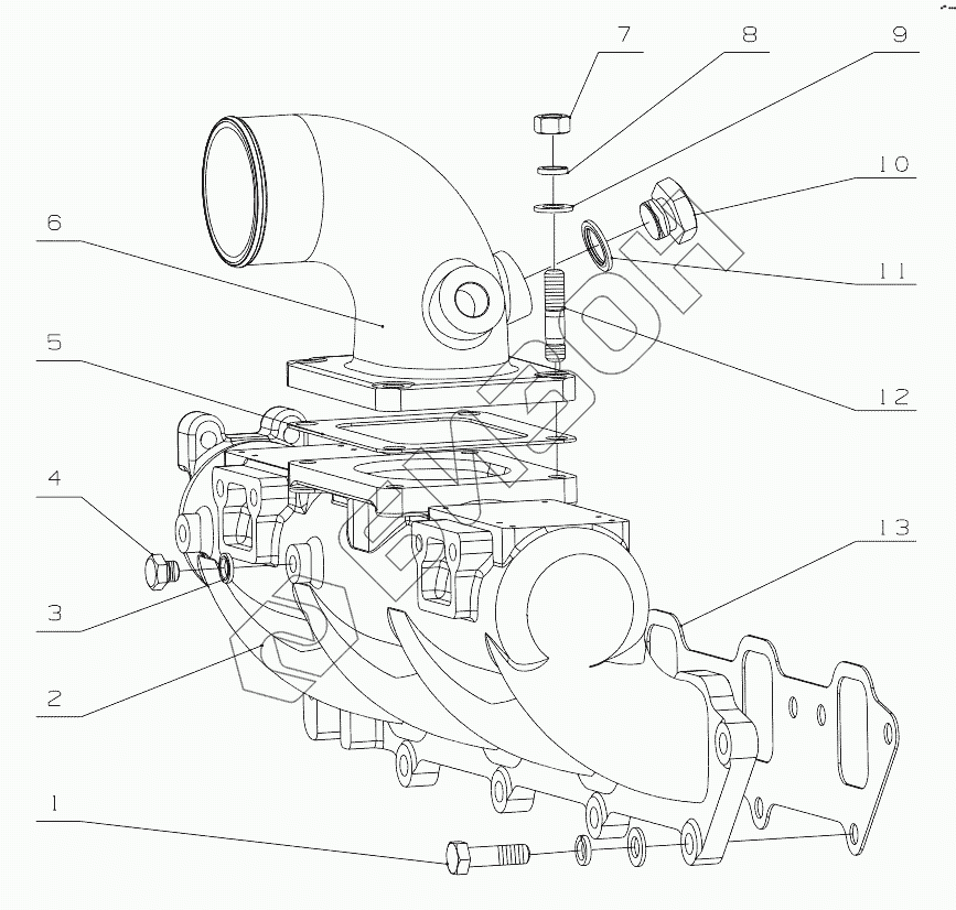 | 6 | G02B0-1008017A | Впускной трубопровод |