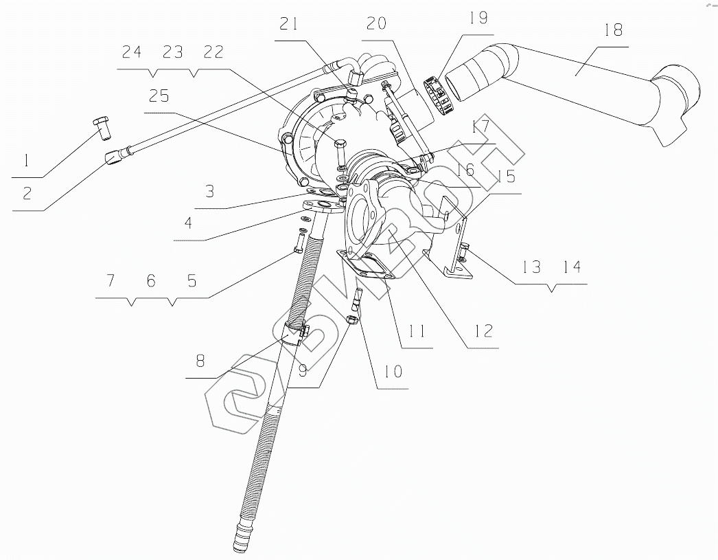Графический каталог запасных частей к технике: Yuchai YC4G180-20. G0405-1118000 Turbocharger Assembly