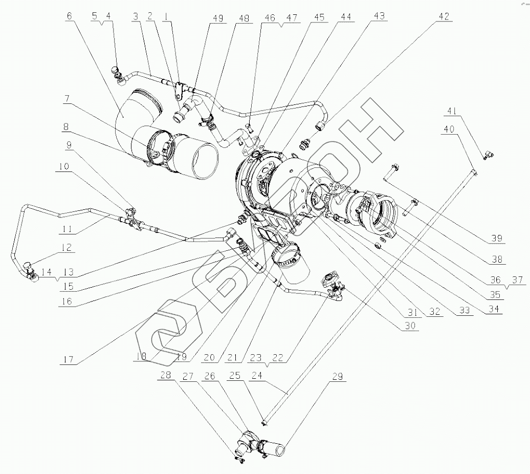 | 42 | G4200-1118061B | Водовпускной и выпускной соеденитель турбоускорителя |