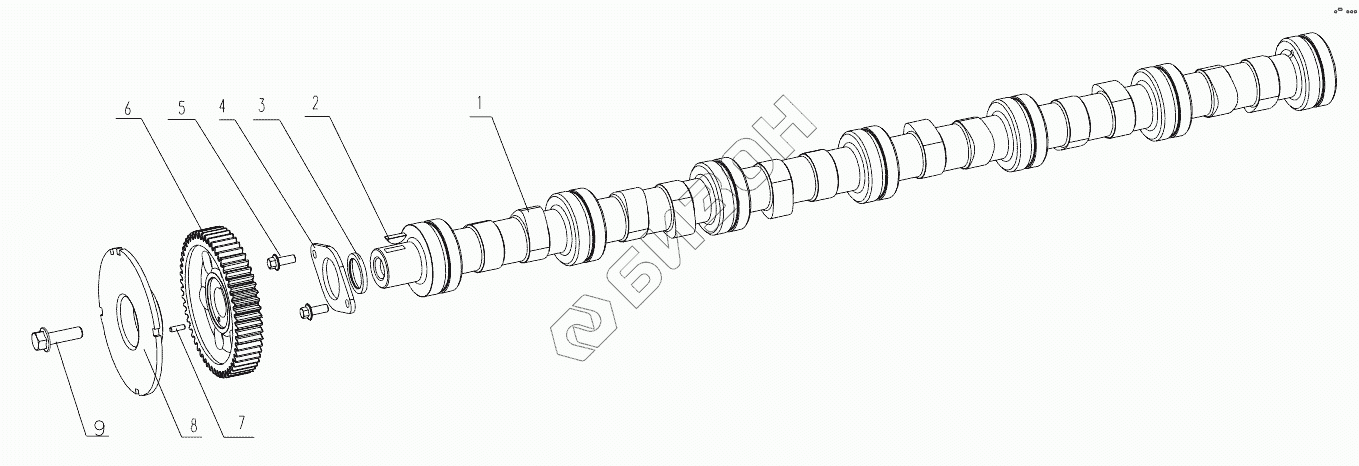 Графический каталог запасных частей к технике: Yuchai YC6J220-50. J5600-1006000/06 Camshaft Assembly
