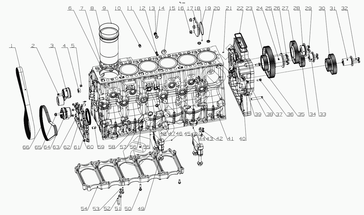 | 33 | K6000-1002904 | Ось шестерни привода компрессора |