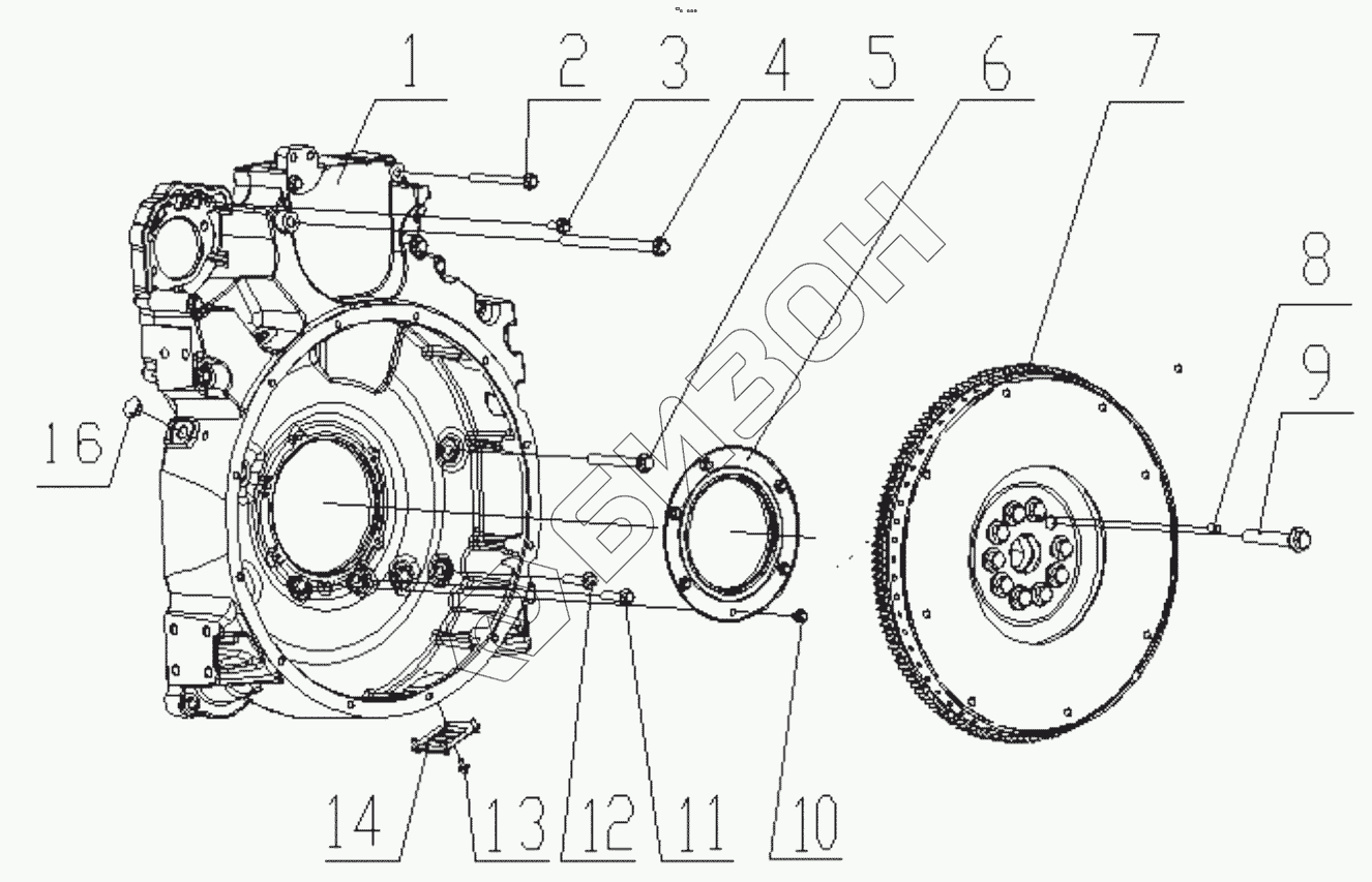 | 1 | K7300-1600401KS2-FF | Fly wheel house |