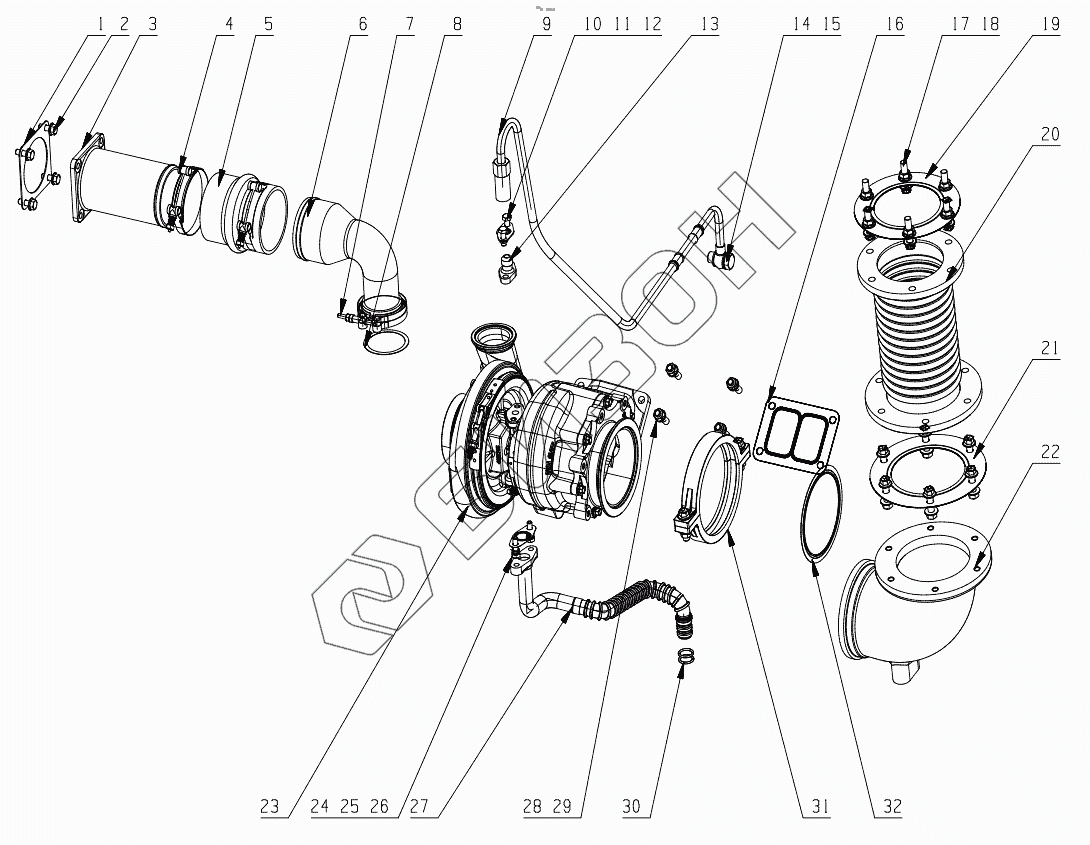 | 22 | KNB01-1118502 | Connecting pipe after turbo |