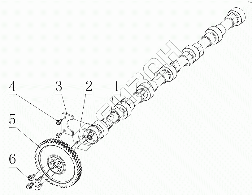 Графический каталог запасных частей к технике: Yuchai YC6MK320N-50. M5000-1006000/04 Camshaft Assembly
