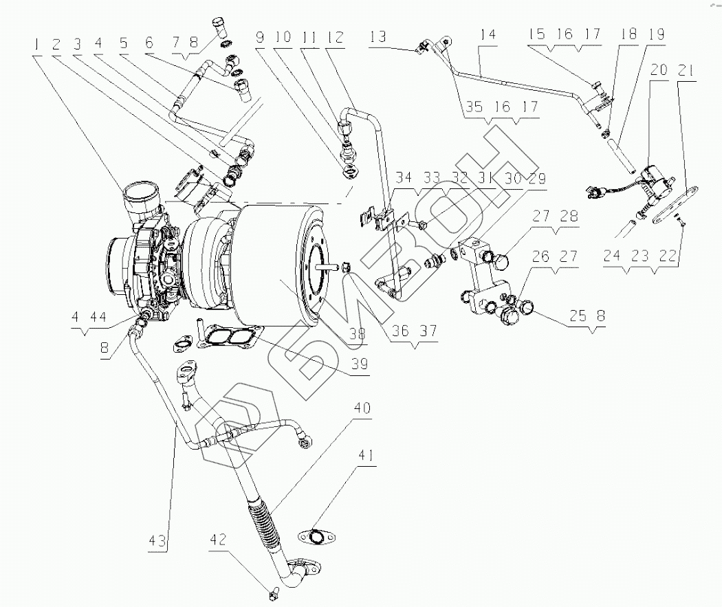 | 44 | MYB00-1118006SF1 | Turbocharger water inlet pipe |