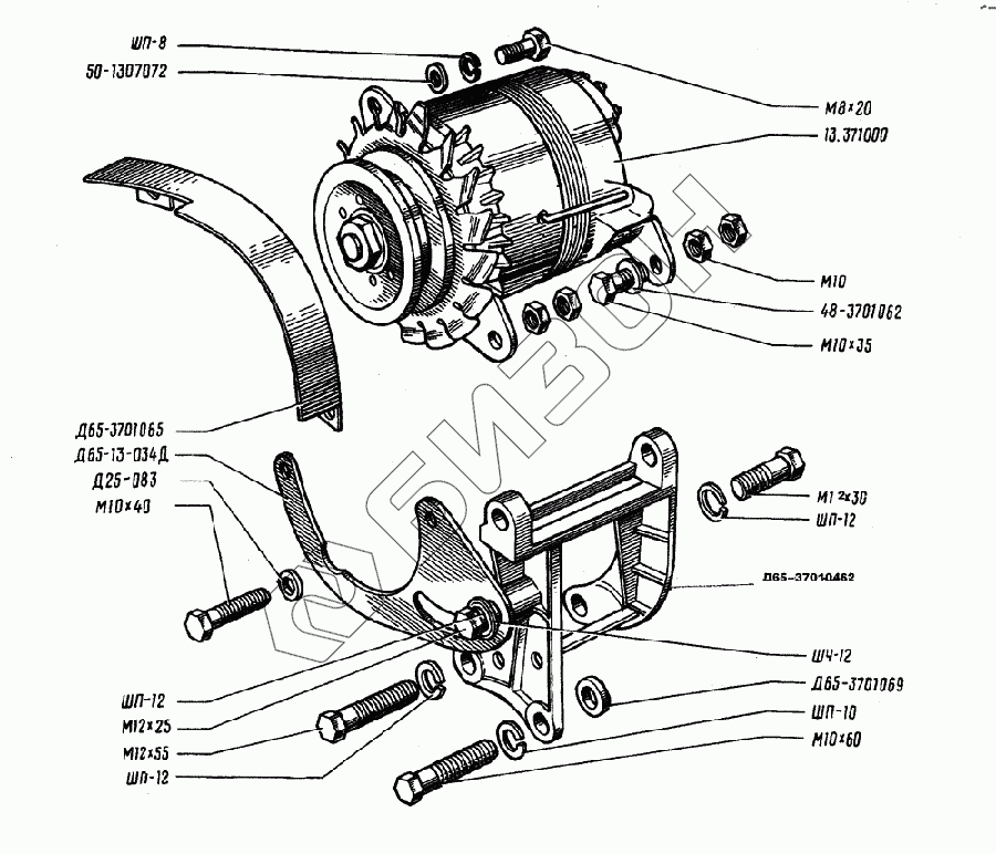 | Д65-3701050Г | Д65-3701050Г | Установка генератора |
