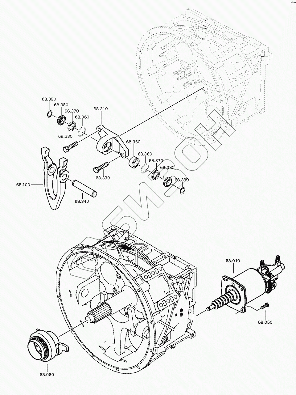 Графический каталог запасных частей к технике: ZF КПП 16S1820TO. Механизм выключения сцепления