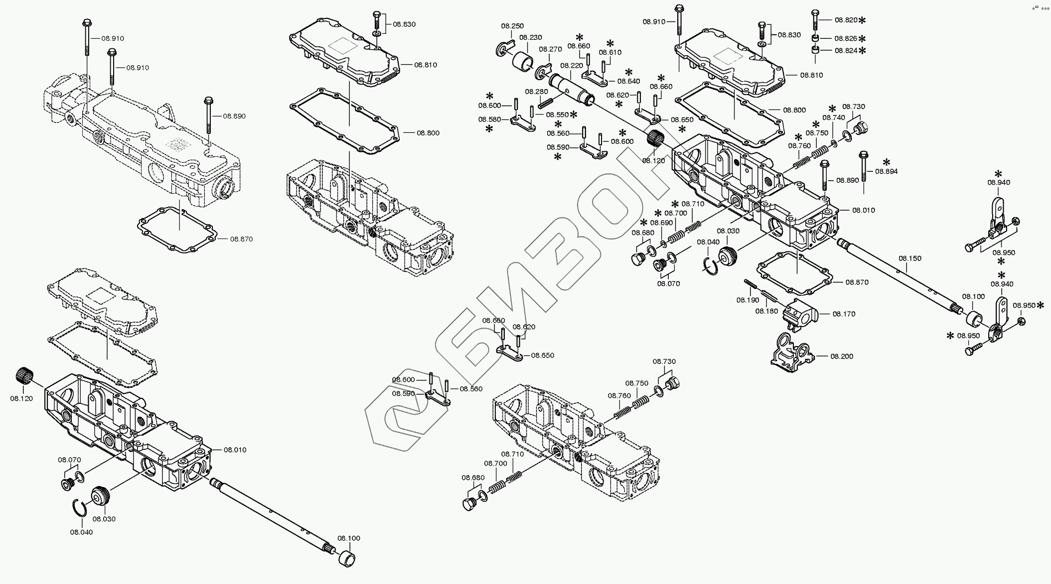 Графический каталог запасных частей к технике: ZF КПП 16S1825TO. КОРПУС МЕХАНИЗМА ПЕРЕКЛЮЧЕНИЯ ПЕРЕДАЧ