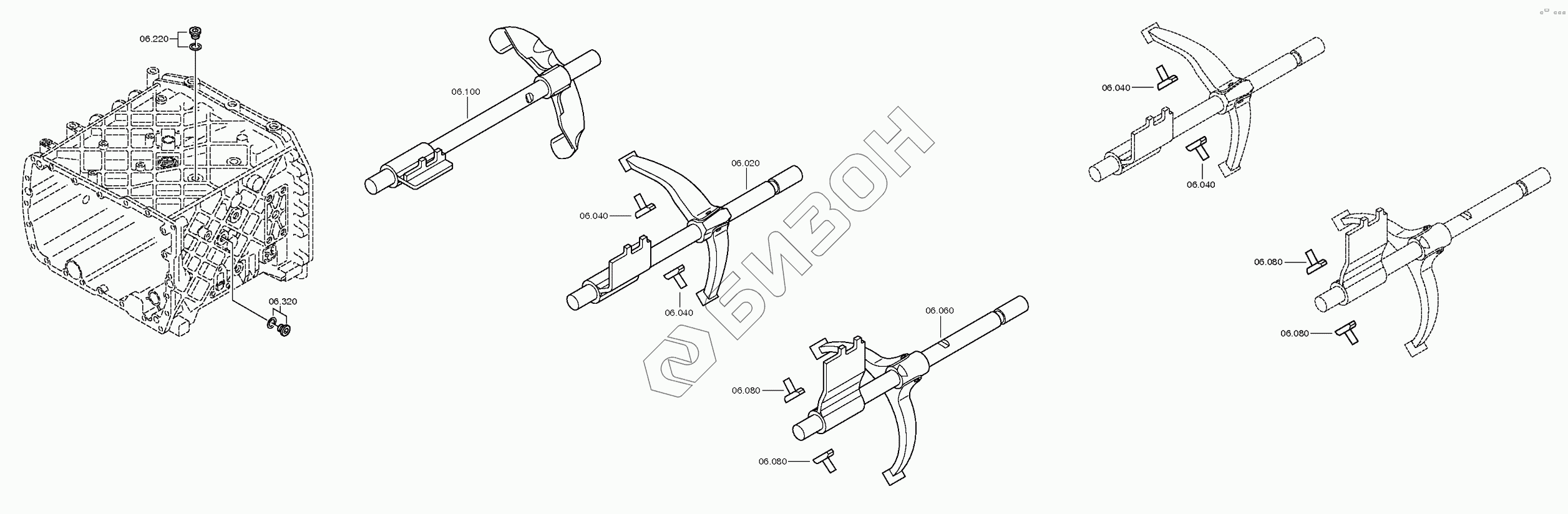 Графический каталог запасных частей к технике: ZF КПП 16S2221TD. СИСТЕМА ПЕРЕКЛЮЧЕНИЯ ПЕРЕДАЧ