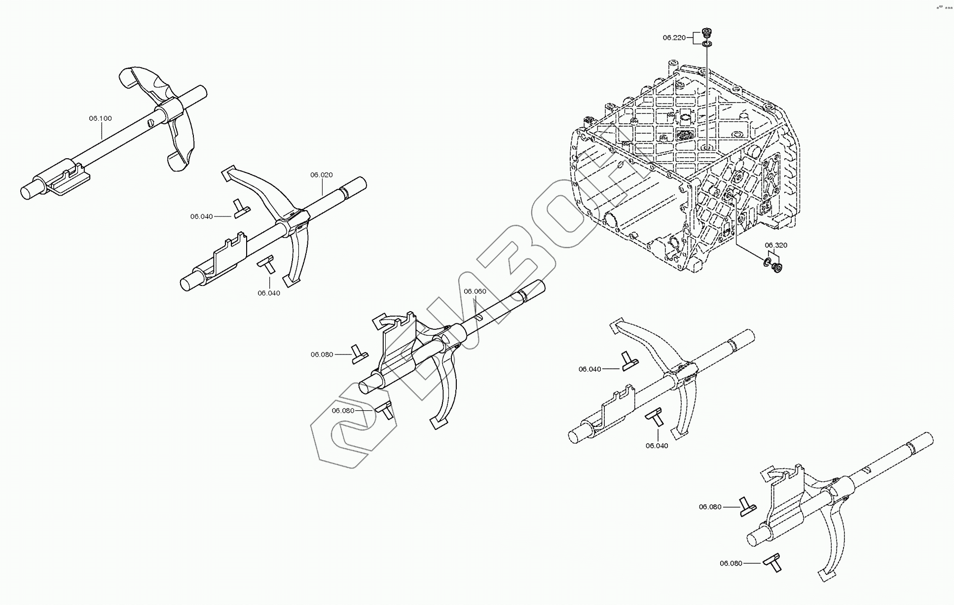 Графический каталог запасных частей к технике: ZF КПП ZF 16S1820. Система переключения передач