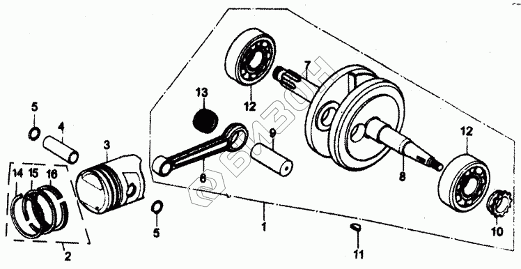 Графический каталог запасных частей к технике: ЗиД Двигатель 1P39FMB-В. Коленчатый вал и поршень