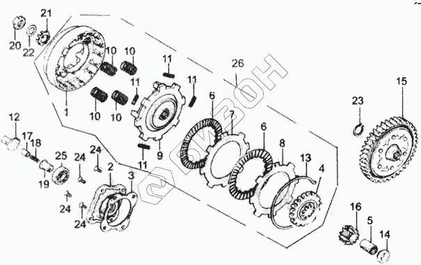Графический каталог запасных частей к технике: ЗиД Двигатель 1P39FMB-В. Сцепление